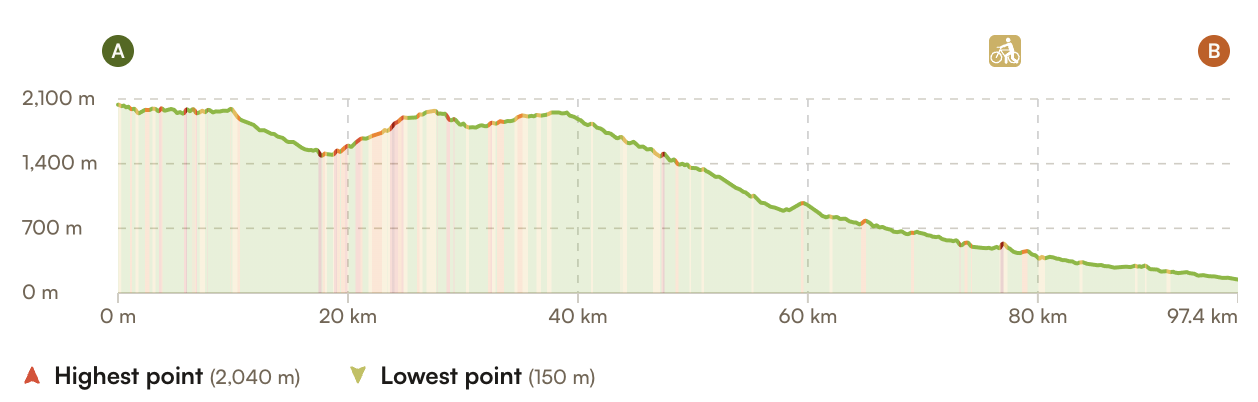 Distance / Elevation: 97 km / 1800m up / 3400m down