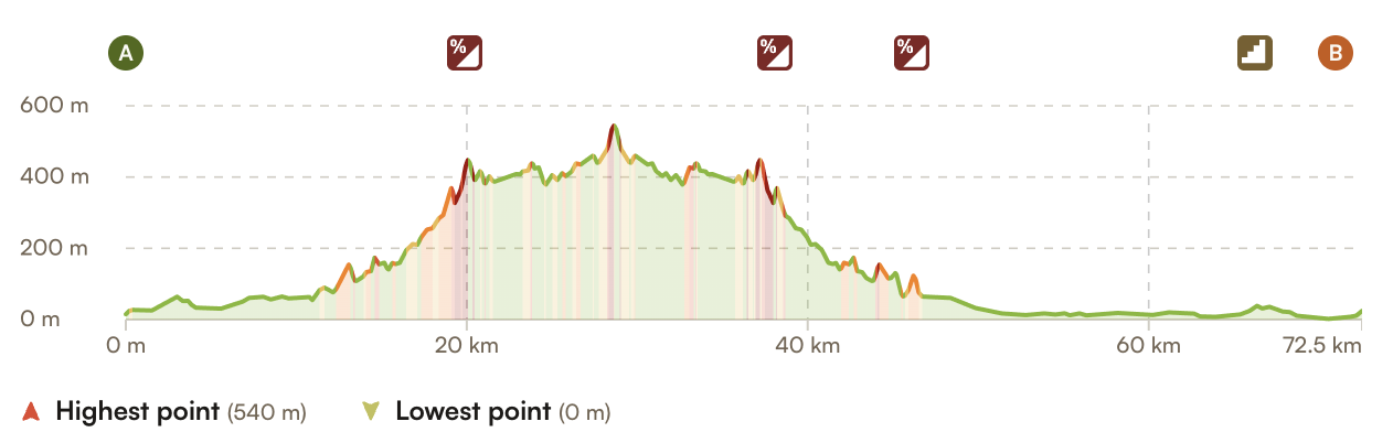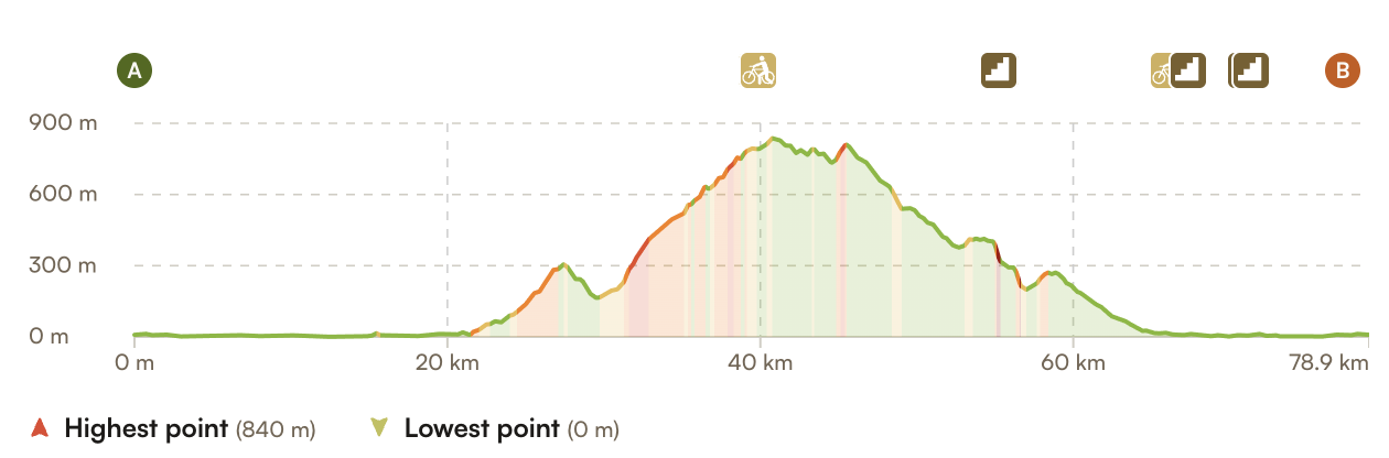 Distance / Elevation: 69km / 850m /