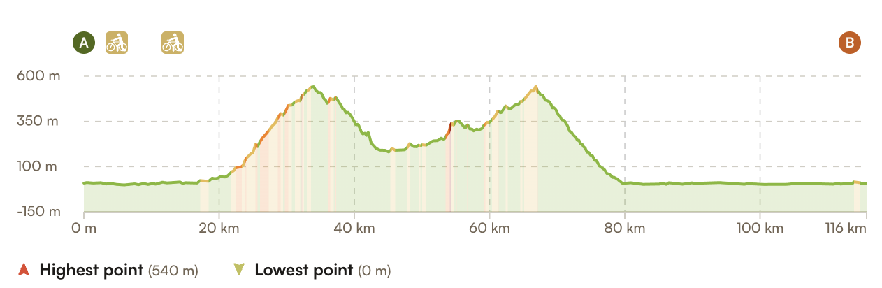Distance / Elevation: 116km / 1370m /